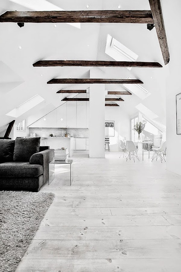 No me quejo tengo un suelo porcelánico gris claro muy sufrido y mate, que no tiene mantenimiento y que solo es puñetero de día cuando veo las patitas que Oker va dejando una vez bebe agua y hace un senderillo de la cocina al sofá, pero si por mi fuera... me pondría uno blanco, una tarima preciosa con aire nórdico que seguramente duplicaría la luz natural... ahora quiero uno de esos y como no puede ser... (no estoy tan loca de cambiar mi suelo por capricho) pues me pongo las botas con fotos y de paso si estáis buscando inspiración os echo una mano.