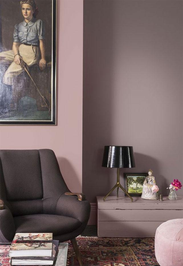 Vamos con Bruguer y Dulux, los junto en un mismo bloque porque diría que es el mismo tono aunque con nombres diferentes. Para mí es el rosa palo de toda la vida, ahora lo llamamos empolvado, un rosa con un punto gris ceniza que al contrario que el tono anterior, es bastante fácil de combinar. Lo habréis visto en multitud de ocasiones sobre todo en ambientes nórdicos y es que con blancos y grises forman un gran equipo. Es un color elegante y del que será más difícil cansarnos y aunque en las imágenes que veréis está usado como tono principal del espacio, yo me sigo decantando por estos colores como complemento a los neutros.