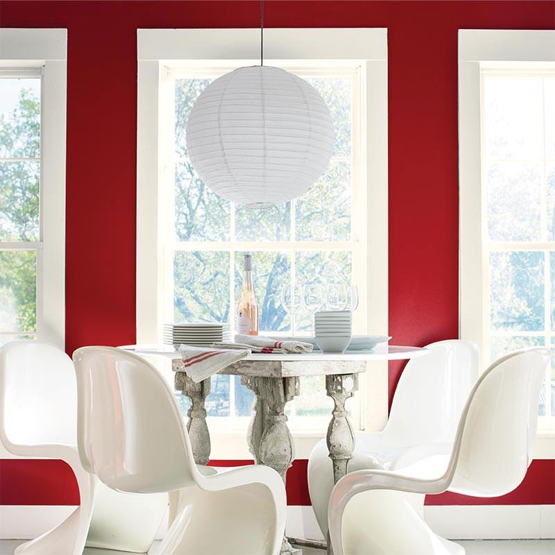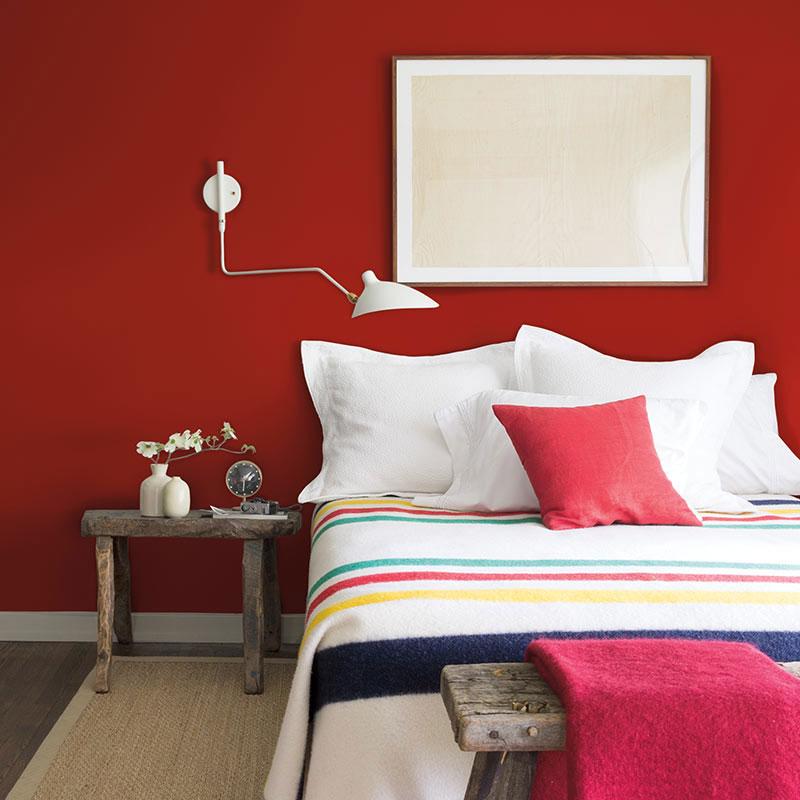 Por último os enseño el color del año para la firma de pinturas Benjamine Moore, se llama Caliente AF-290 y es un rojo intenso, enérgico. Este tono resulta idóneo si lo que buscas es crear un punto focal, que la mirada se dirija hacia allí, ya sea a una pieza en concreto, a una pared, a una puerta de paso o como en la última imagen, a la entrada de casa.