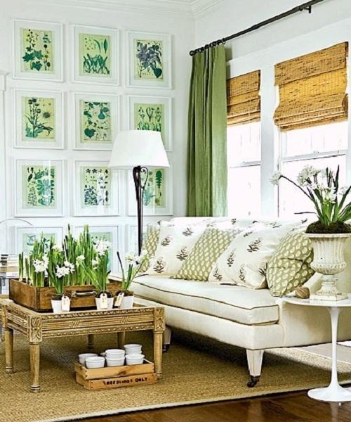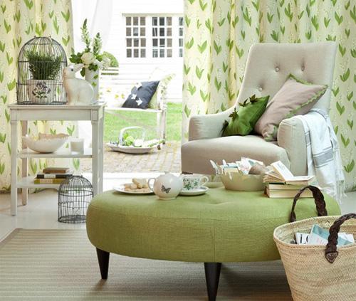 El color del mes de Abril escogido por Barnices Valentine es el Té Verde, una paleta de color verde claro, ideal para aplicar a tu decoración en esta época del año. Recordemos que el color influye mucho en la decoración, le da carácter, y a veces la baña por completo, como en la imagen que os dejo a continuación: el color verde y los motivos florales inspirados en la primavera, llenan de frescura este rincón de lectura.