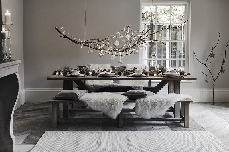 Nos es necesario un árbol completo, y ni tan siquiera que está apoyado en el suelo ¿qué os parece esta rama sobre la mesa? Decorativa, y tambiénn puede ser funcional si además le añadimos luces... Sólo apta para los más atrevidos ;)