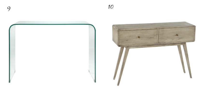 Hoy nos vamos de compras y os traigo diez consolas para el recibidor. Prefiero los recibidores con pocos muebles, y es que menos es más, como os contaba en este post sobre recibidores.