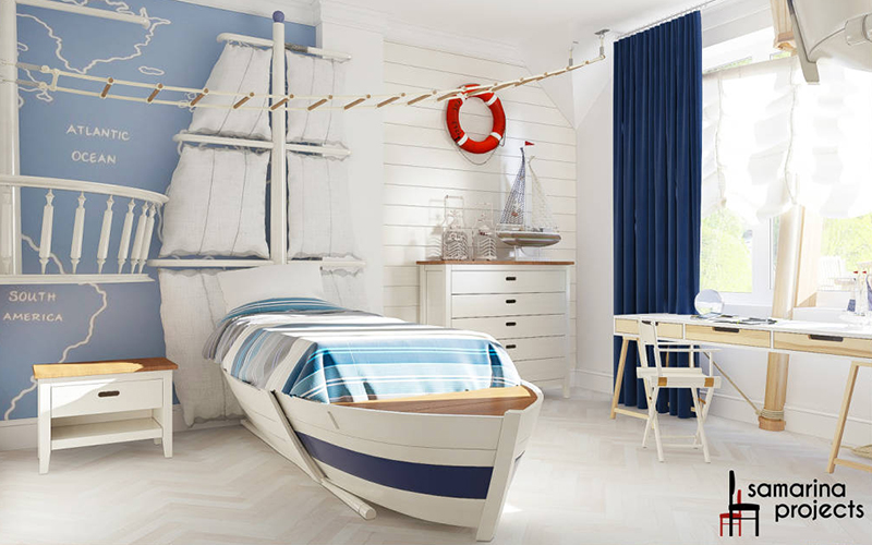2. Cama barco¡Cuánto me recuerda a mi infancia! Cuando era pequeña estaba totalmente empecinada en tener una cama coche. Por supuesto, mis aitas no me trajeron un coche por temas de espacio..., pero sí intentaron conseguir que el espacio fuera de mi agrado ;) El peque que tenga el placer de dormir en esta cama barco tiene que ser un enamorado del mar ¡y vivir en una casa bien amplia! jajaja! ¡No le falta detalle!