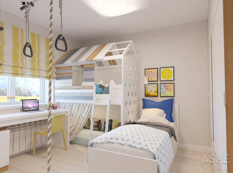 ¿Quién no ha querido tener una casa en el árbol? En esta familia se han llevado la casa directamente al dormitorio consiguiendo nada menos que 3 camas. Ganchos de escalada, cojines montaña, o el color del sol... ¡Un espacio pensado para intrépidos exploradores! ;P
