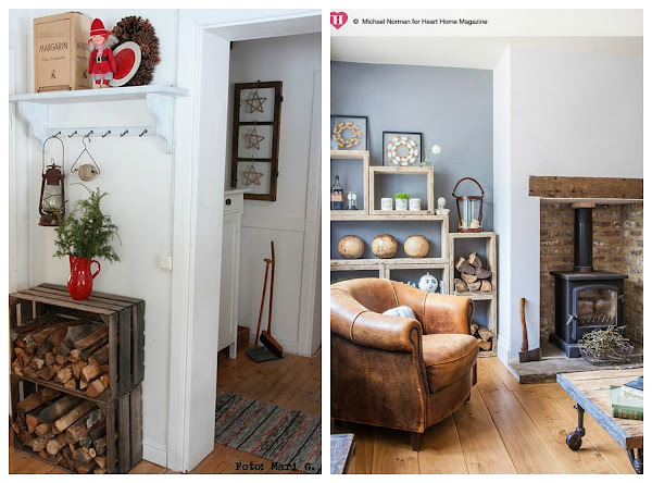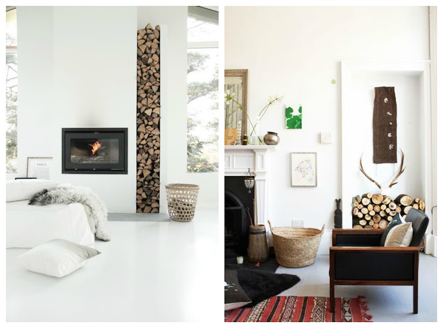 Pero... ¿y los troncos? ¿cómo se almacenan?, pues mira las siguientes fotos, verás que ideas tan buenas. No sólo prácticas sino totalmente decorativas. Vamos, que estoy pensando en aplicar alguna de esta ideas en el salón... y eso que no tengo chimenea... jejejeje...