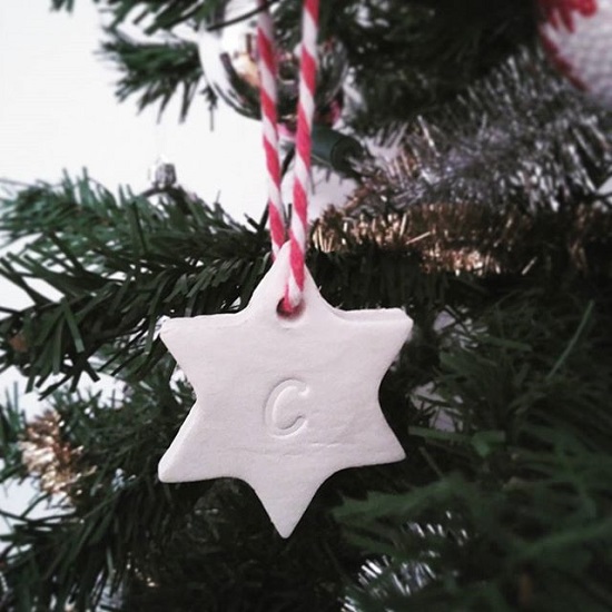 7 - Otro adorno navideño hecho con arcilla blanca. Tenemos cada uno el nuestro, con nuestra inicial, colgado en el árbol de Navidad.