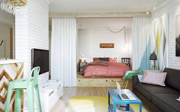 Aprovecha bien los espaciosEs uno de los quebraderos de cabeza más difíciles de resolver a la hora de decorar una casa y es que aprovechar bien todos los espacios para que la decoración siga siendo idónea pero que a la vez sea lo más provechosa posible es un trabajo complicado. La idea que os traigo para que aprovechéis bien el espacio de vuestra casa es la posibilidad de levantar el suelo de una de vuestras estancias para hacer en el hueco que ganamos en el suelo un "altillo". Este apartamento que os muestro tiene la facilidad añadida de que los espacios se comunican y no tienen puertas ni muros que harían este tipo de despensa un poco más complicadas de hacer, pero la verdad es que me ha parecido una idea genial para aprovechar el poco espacio que tiene este apartamento y con un resultado muy bueno, como podemos ver en las fotos: