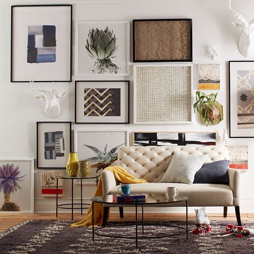 Gallery wallEs una de las tendencias que más me gustan de los últimos años en la decoración, los collage de fotos y objetos que hacen de una pared lisa y simple en un elemento singular y llamativo de la casa. Además es super fácil de hacer y con muchas posibilidades. A mi los que más me gustan son los formados por marcos del mismo color y con la misma terminación que hagan un conjunto monocromático, ya sean láminas, imágenes o con objetos de recuerdo en el interior. Los que os quiero enseñar son todos muy diferentes para que veáis que son muy versátiles y que no hay ninguna regla marcada, sólo hacer un collage y decorar. ¡¡Os va a quedar magnífico!!