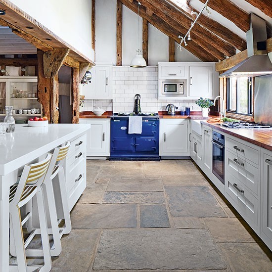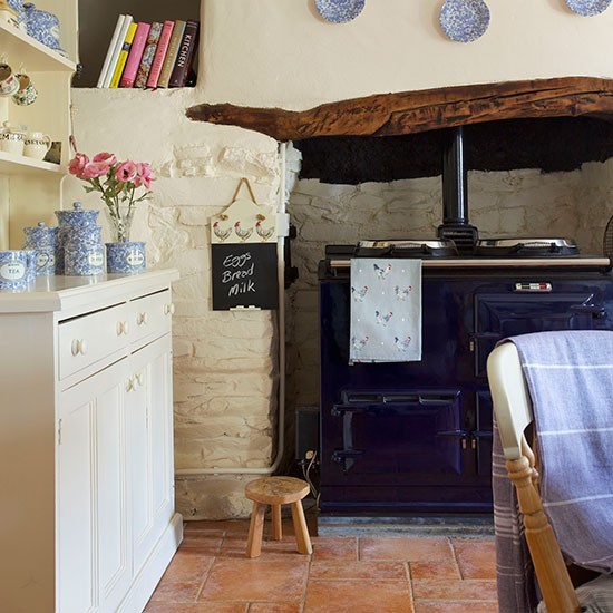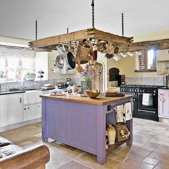 Combinar muebles nuevos con piezas vintage que le daran un verdadero sabor a campo y un toque original y actualizado para que no parezca la cocina de tu abuela.Como alacenas, o mesas de aspecto desgastado como lugar de trabajo o para la zona de comedor. La mesas tocineras son muy tipicas de ese estilo.