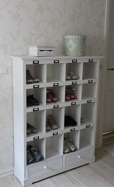 2- Para la gente que le gusta el orden y la limpieza, con una sencilla estantería, y unas cajas del mismo color, creamos unas imágenes del contenido y las etiquetamos en el exterior de la caja. Si, es costoso pero, cuántas veces tenemos que abrir varias cajas hasta dar con el calzado que buscamos.