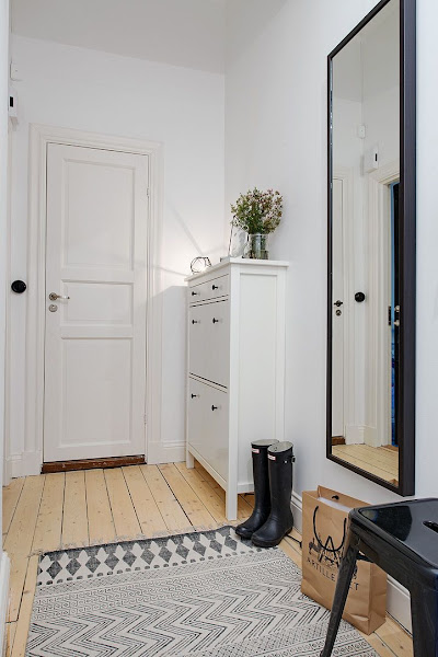 3- Mobiliario estándar y económico como el de Ikea, ocupan poco espacio y quedan muy bien en el hall de entrada y pasillo. Si puedes poner un pequeño asiento al lado mejor.