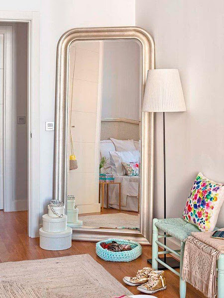 Benditos espejos que siempre suman luz. En un dormitorio peque quedan ideales donde los pongas. Algunos valientes los ponen en el cabecero, otros sobre una cómoda. De tamaño grande, mediano, pequeñito. Solos o en conjunto.