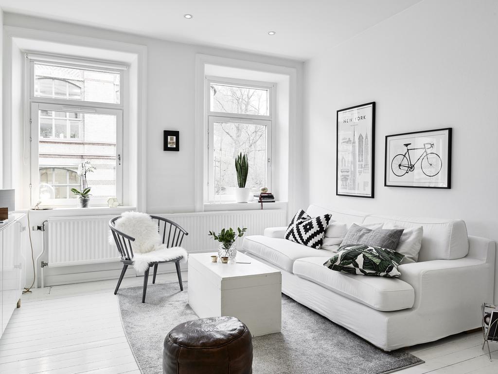 2. El color blanco como tono base. Por la misma razón, el color blanco se utiliza como base de todo, en las paredes, el techo, incluso el suelo, buscando potenciar la claridad de los espacios y convirtiéndose en el marco perfecto para disponer el resto de elementos decorativos. Otras opciones de color igualmente válidas y utilizadas son los tonos neutros y más claros del espectro como beige, grises claros o tonos hueso.