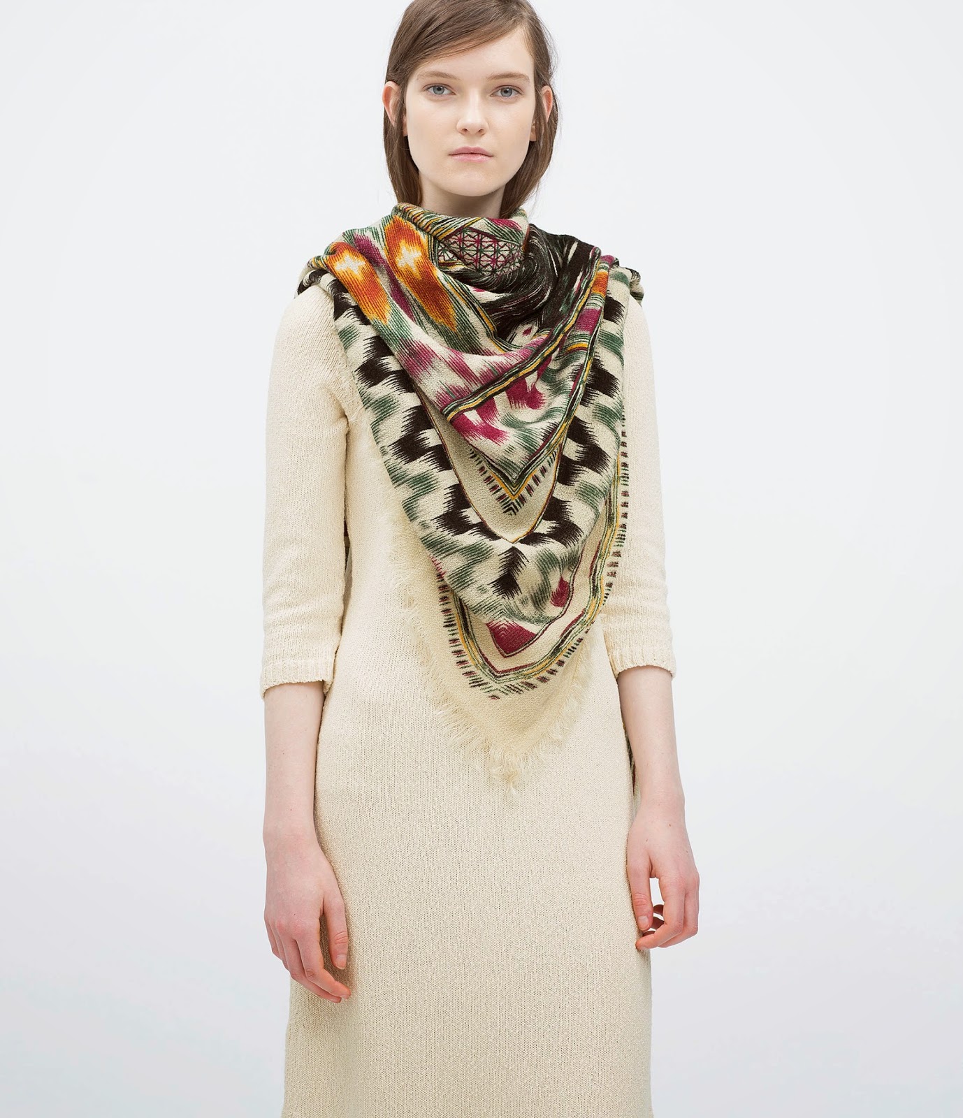 Seguro que esta opción la has llevado infinidad de veces, es una clásico y el resultado final, desde mi punto de vista es perfecto. Es una manera de llevar el foulard que te ayuda a dar volumen y que gracias al nudo no tienes que estar todo el tiempo pendiente de que se mueva o que las puntas te molesten.#10 Juego de tamaños