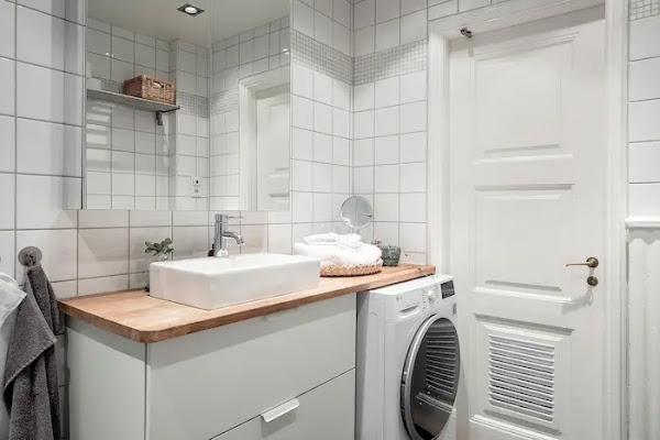 ¿Para qué? Muy fácil, para poder así liberar espacio en la cocina, sobretodo si es abierta y antigua, y no quieres que se vean estos trastos.En España no tenemos mucha costumbre pero una lavadora en el baño (y la secadora si la usas) facilita la tarea de la colada (del cesto al tambor) y en algunos casos incluso del secado. Seguro que habéis visto esos modelos de IKEA para colgar ropa en perchas y terminarla de secar en los días nublados.