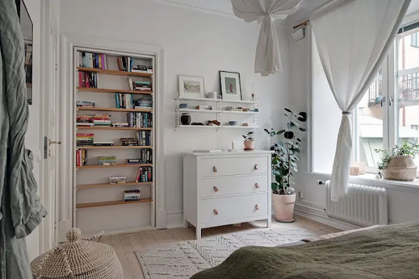 Todos los rincones con gusto se pueden aprovechar. Igual nos da que sea en el salón, que un la cocina, el dormitorio o el cuarto de los niños.Si vives en una vivienda mínima, tienes que agudiazar el ingenio para poder guardar en espacios en los que hasta ese momento ni se te hubiera ocurrido. Sirva de ejemplo la librería en el vano de la pared con unas simples tablas de madera.