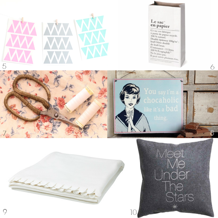No me diréis que no son apetecibles?, esas tijeras de jardinero retro, el cartel de "chocoadicta", los vinilos lindos geométricos, la famosísima paperbag, esas copas para agua con estampación de frutas... En los numeritos tenéis los enlaces a las tiendas donde están todos estos hallazgos tan lowcost y tan molones, porque tener cosas bonitas no cuesta mucho dinero, solo hay que saber encontrarlas!!!