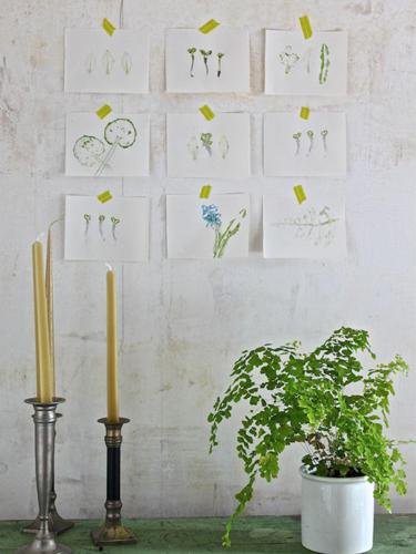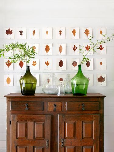 Una colección de cuadros estampando las hojas.Un DIY super fácil ideal para hacer con los niños en tardes lluviosas de domingo.