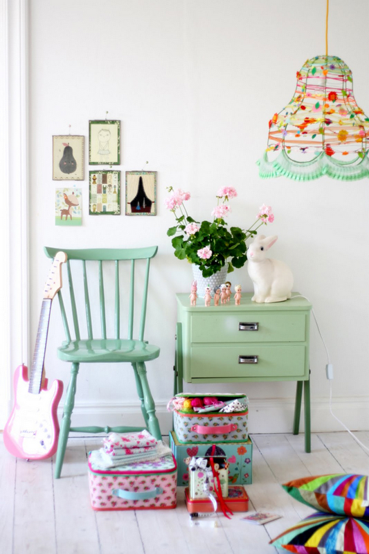 Para crear un rincón divertido siendo parte de un conjunto en un dormitorio pero que no sea en la cabecera de la cama lugar habitual donde encontramos las mesitas de noche.