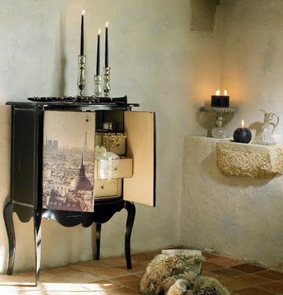 Esta es nuestra propia versión que hicimos de una entrada utilizando una mesita de noche art deco para crear una entrada diferente y que bien se podría adapatar a un pequeño espacio como suele ser lo más común en la mayoría de nuestras casas.
