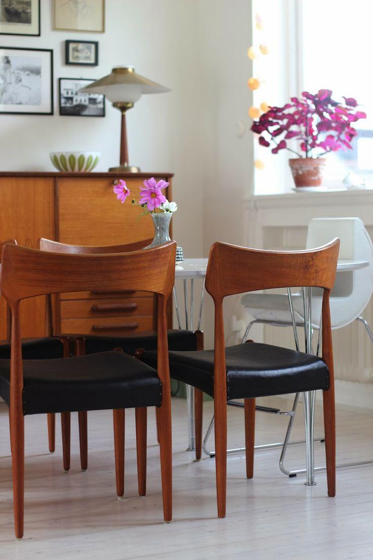 Como a mi me encanta rescatar piezas de cualquir época no quería dejar pasar la ocasión de mostrarte algunos ambientes creados con sillas y sillones de estilo nórdico.Tanto de inspración sesentera o propiamente de esa época cuando la producción y consumo se hizo masivo.Los diseñadores empezaron a creear piezas de líneas más depuradas y sencillas y a utilizar materiales distintos a la madera .¿Te acuerdas del famoso skay?.Un tipo de material que estaba en todas las casas y que era como una suerte de piel sintética.Bueno para eso tendrías que ser un poco mayorcita jeje.