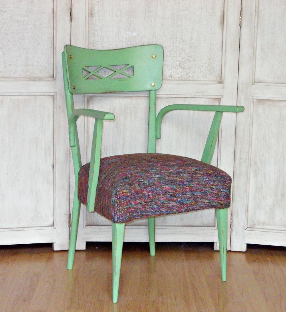 En Bohemian & Chic hemos hecho nuestra propia versión actualizando estas sillas con brazos de los 60 que restauramos .Versionándolas con un toque especial que da un nuevo tapizado hecho con tela de jarapa .