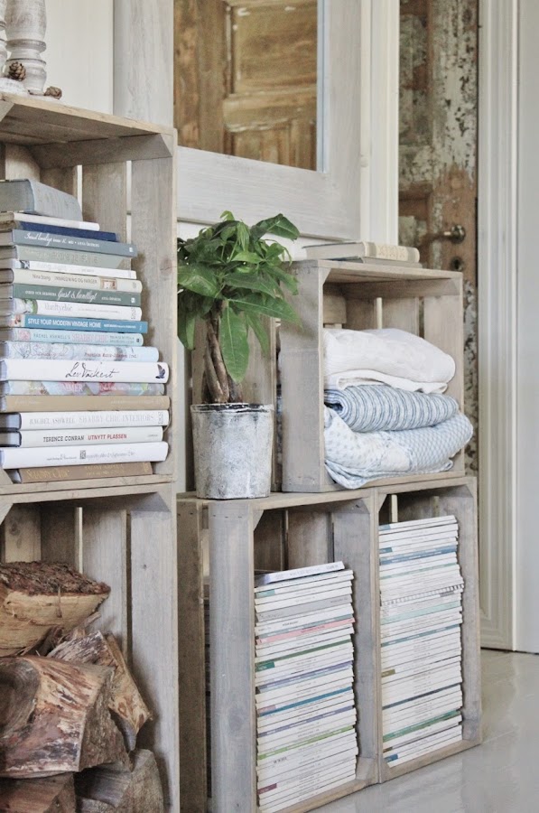 Como librería apilando las cajas una encima de otra, podremos colocar libros o revistas, y daremos al ambiente un estilo informal y moderno.
