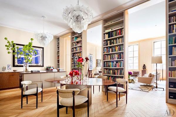 aquí el aprovechamiento de todo lo alto y ancho de esta pared para construir unas librerías a medida