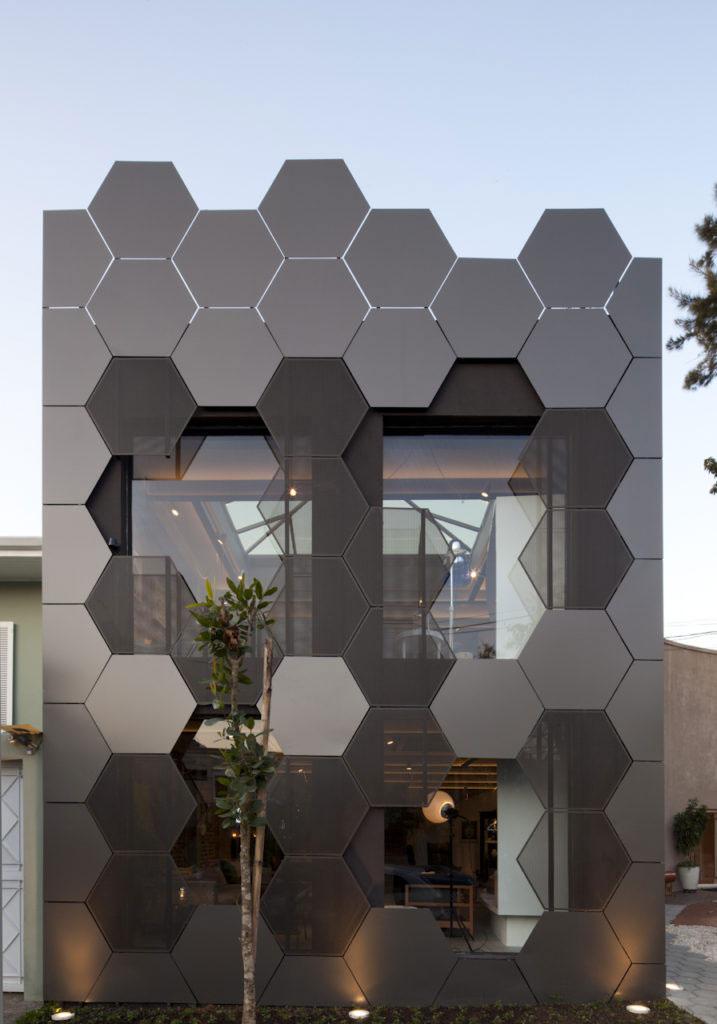 Nos vamos a Sao Paulo, Brasil. Se trata de una tienda renovada por el Studio SuperLimao. Su fachada sigue un patrón de hexágonos con distintos acabados, algunos poseen un recubrimiento opaco mientras otros son semi-traslúcidos para crear un efecto visual más dinámico e interesante.