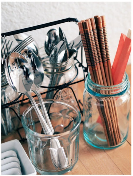 Rápida y cómoda forma de identificar todo al instante. Desde la cubertería y pasando por cañitas, palillos y cualquier elementos de cierta verticalidad que pueda incluirse dentro. Igual de original será presentarlo así directamente en un piscolabis en casa con amigos.