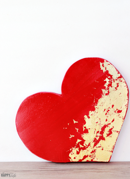 8. Corazon de madera pintado a mano con toque dorados