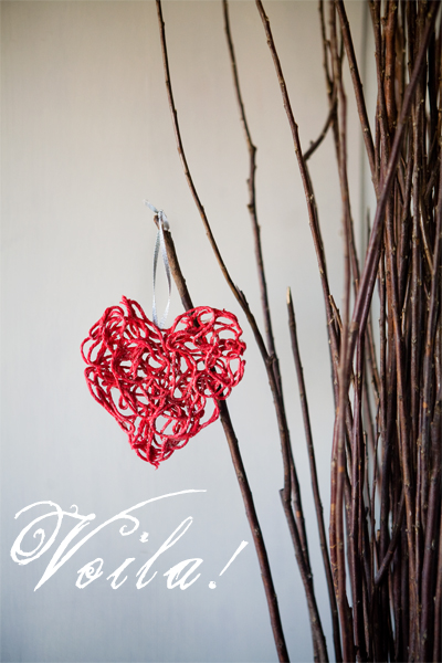 13. Corazones hilados y endurecidos con pegamento para colgar
