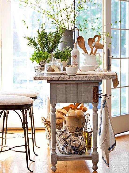 Una isla es como te he dicho un elemento muy versátil que puede ulilizarse como zona de trabajo, de almacenaje y /o convertirse en mesa para comer.En esta selección no te muestro las típicas islas que vienen hechas de fábrica a conjunto con el resto de la cocina sino muebles como mesas,estanterías bajas, camareras, hasta aparadores vintage de diferentes estilos y épocas reconvertidos en islas.Una opción low cost y con mucha personalidad rescantando piezas que tengas y no sabes que uso darles, piezas heredadas o alguna que encuentres en mercadillos o tiendas de segunda mano.Con un buen tuneado que combine con el estilo de tu cocina puede hacer de esta pieza un punto focal muy decorativo a la vez que útil