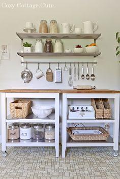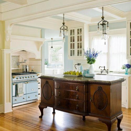 Bueno y si cuentas con espacio la opción del aparador me parece genial encontré está idea hace ya algún tiempo navegando por la Web y me pareció una chulada para reciclar estos aparadores que solía haber en casa de la abuela.Que forma tan original de tener una mesa de trabajo enorme un montón de lugar de almacenaje y a la vez que te sirva como separador de ambientes entre la cocina y la zona de comedor.