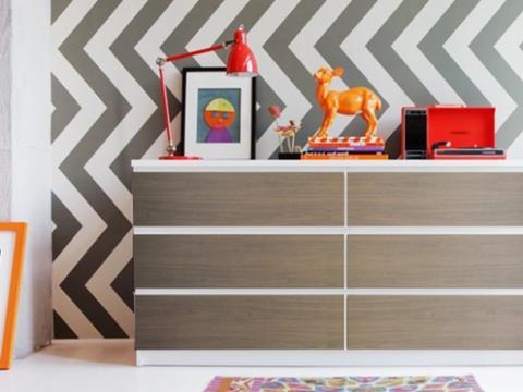 Tienen un apartado expreso de stickers para muebles de IKEA (cajoneras, taburetes, frentes de cocina, etc), pero me parece que no hay que pasar por alto el resto de opciones interesantes, como los vinilos murales tipo franja de color que ya os comentaba en la Guía para decorar pisos de alquiler. Usados con buen gusto, estos stickers murales tienen un gran potencial transformador.