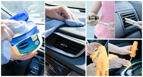 7.- Coloca una pinza de ropa en la ventilación del auto. Luego rocía algunas gotas de esencia para perfumar.