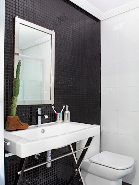 La sencillez ha sido la clave para decorar este baño en blanco y negro de un loft de tan solo 25 metros cuadrados.