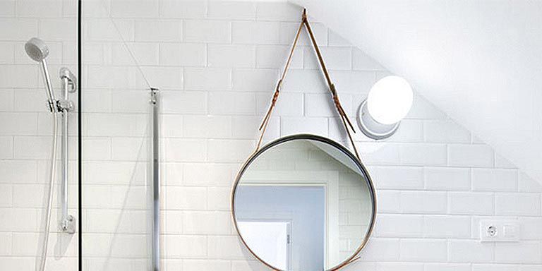 La mejor opción para dar claridad a un baño pequeño siempre es el blanco, pero no te olvides de darle personalidad con los complementos. En este piso de 55 metros cuadrados han dado un toque especial a este espacio con un espejo redondo colgado.