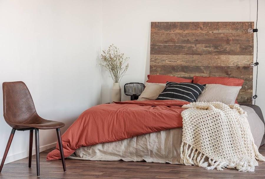Elegir el tono de rojo adecuado en su habitación puede marcar la diferencia en el diseño. Una terracota roja terrosa puede ayudar a calmar sus pensamientos y calmar su mente. Se puede usar un rojo suave pulido a tierra para aportar un calor suave y relajante al dormitorio principal de una casa rústica. Piense en acentos de madera, lujosas mantas de lana y muebles grandes cuando trabaje con rojos.