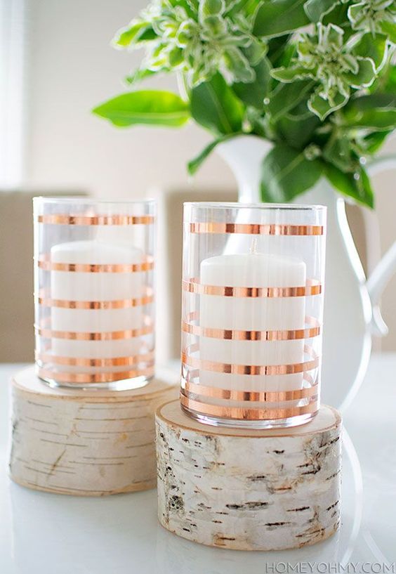 Usa vasos de vidrio como porta velas solo usa cinta de pintor para cubrir la parte que no quieres pintar