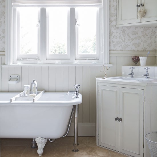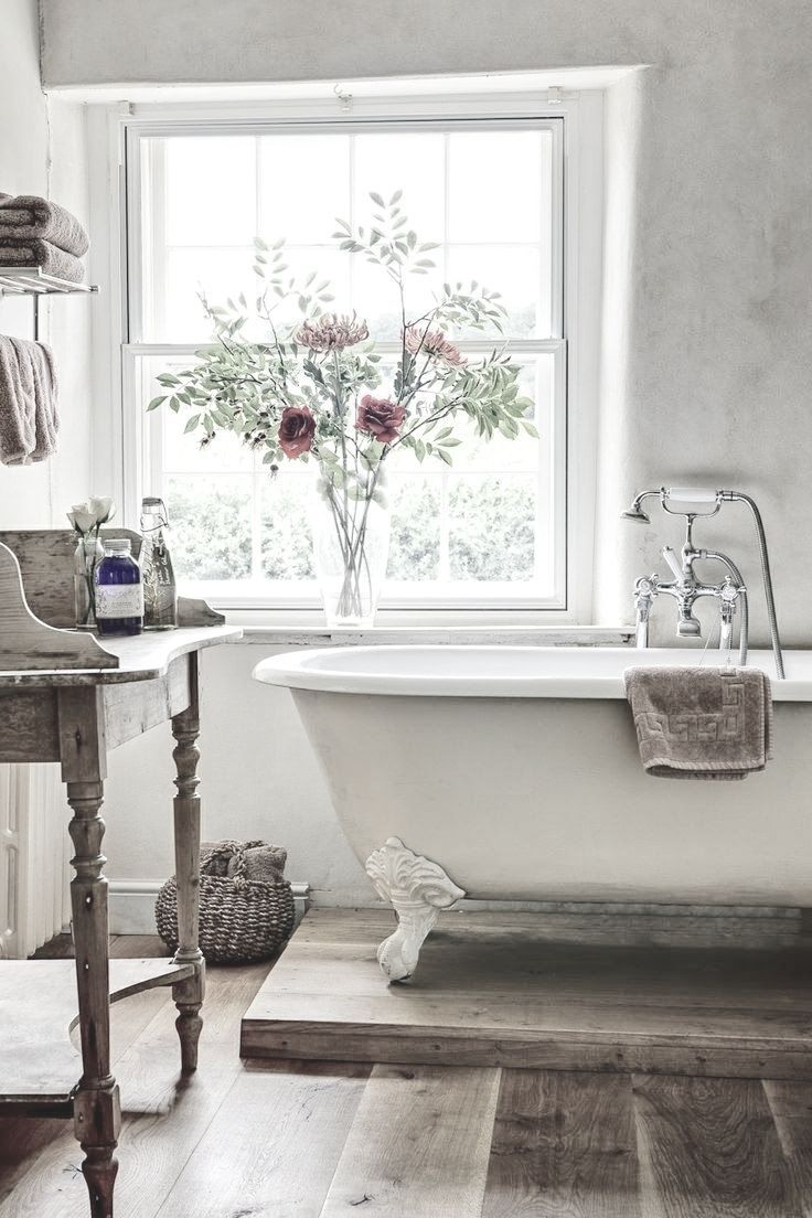 Griferias y sanitarios de líneas antiguas.Las bañeras exentas con patas son un must en este tipo de decoración.