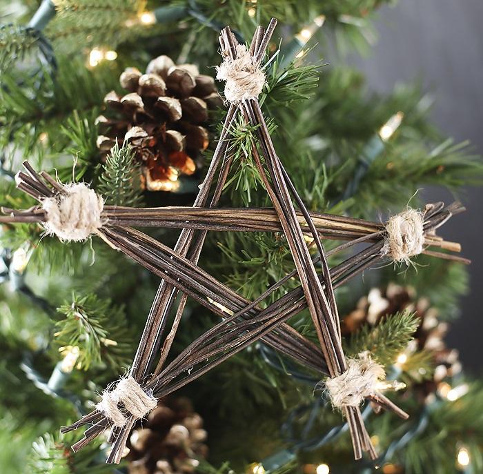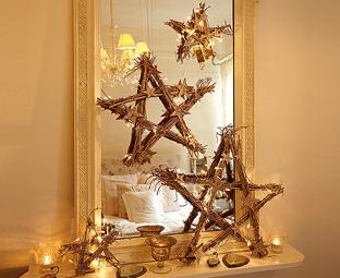 Estrellas.Uno de los elementos más recurrentes y bonitos y que puedes hacer en diferentes tamaños y utilizarlo para decorar una chimenea por ejemplo.Envuelta en luces como en esta imagen.De gran tamaño o pequeñas estrellitas para utilizarlas en el árbol de Navidad como te muestro más abajo. Aquí tienes el tutorial de como hacerlas.