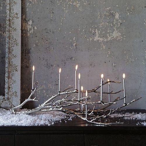Y para finalizar esta idea super original de una gran rama a modo de portavelas suspendido que me parece simplemente precioso.