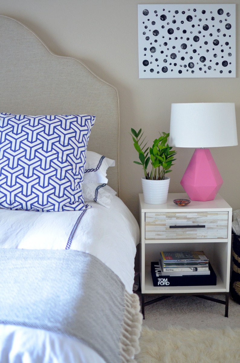 En este caso tenemos un dormitorio mas neutro en el que su máximo protagonismo reside en los textiles y las bases de las lamparas de sobremesa en un rosa chicle, sin duda una opción sencilla, que no pasa de moda y fácil de adaptar al paso de los años.