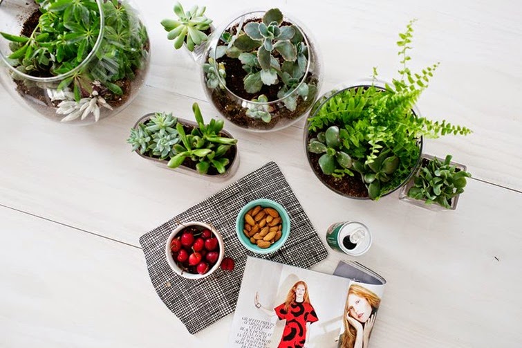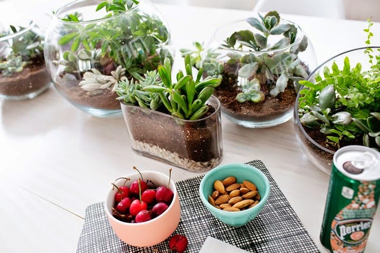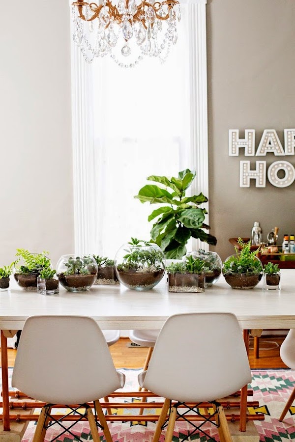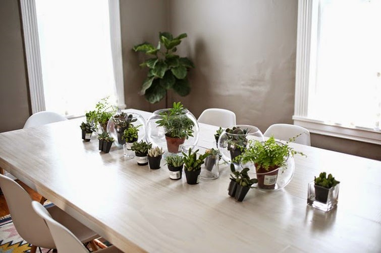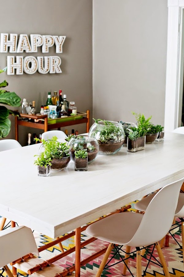 Buenos días! Empezamos la semana con muuuucho verde! Dos ideas para decorar una mesa en verano, por pocos euros, y que quedan de lo más llamativo. Lo cierto es que no somos mucho de plantas y se nos mueren casi todas, sin embargo, sí nos gustan para decorar y ese toque natural que aportan a los ambientes, sencillamente, es insustituible.