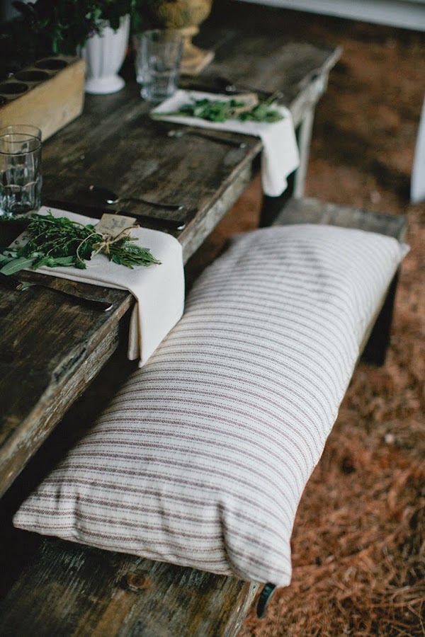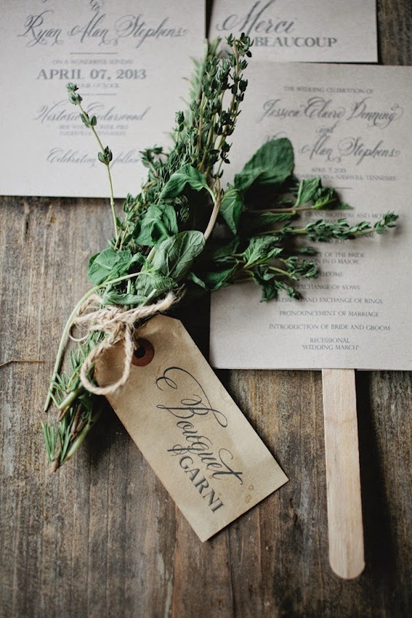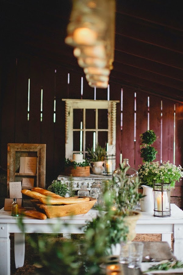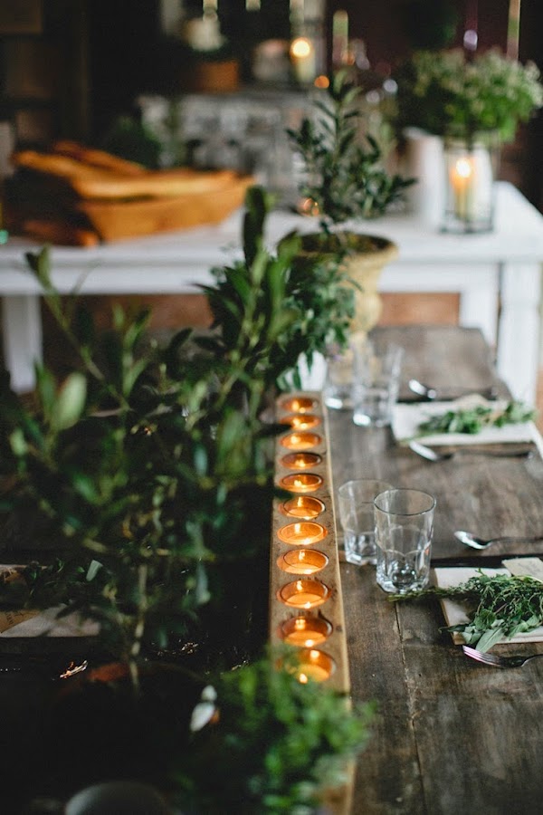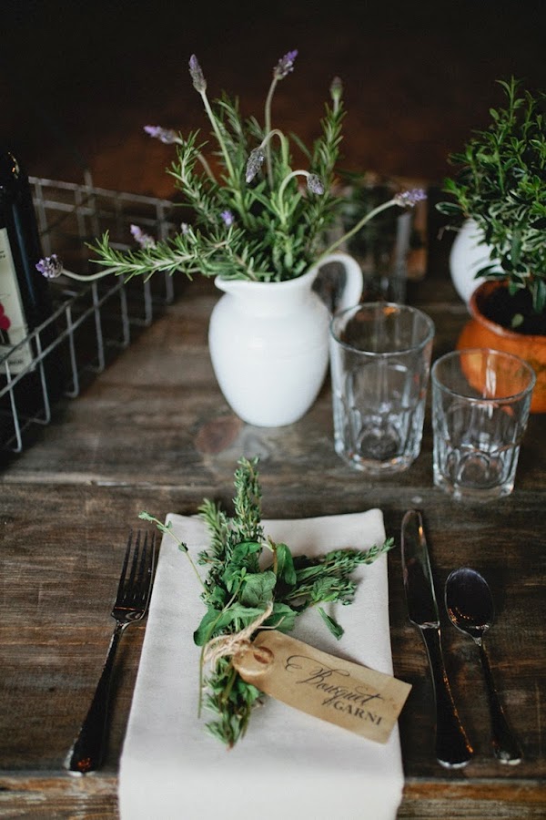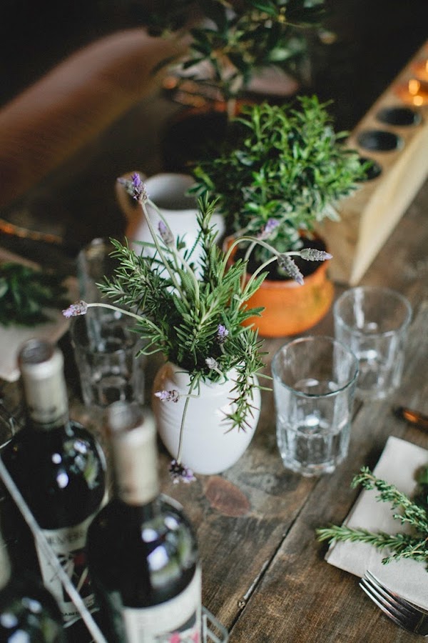 Por otro lado, en la segunda opción, emplean hierbas aromáticas para darle color a una mesa de celebración. Plantas al centro y detalles en verde en cada rincón: en platos, botellas, centros de mesa... La verdad es que tiene que ser un gusto sentarse a una mesa que huele a jardín, con tantos aromas buenos por todas partes, verdad?