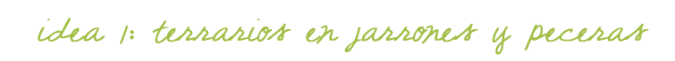 La idea para la primera mesa, es tan sencilla como crear con elementos de cristal que tengamos en casa (me encanta la pecera redonda!) una especie de camino de mesa verde. Sencillo, bonito, fácil de hacer, y que prácticamente no requiere mantenimiento (un poco de riego). Es perfecto con la mesa puesta y también para estar a diario.