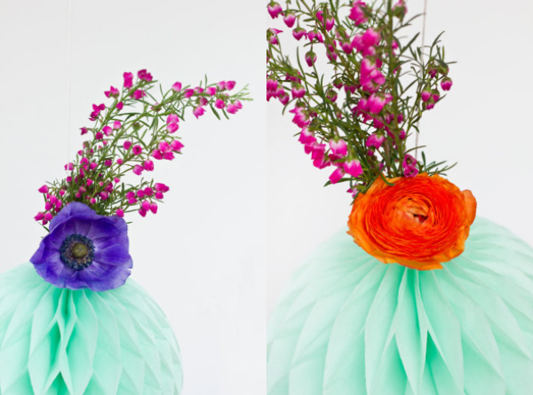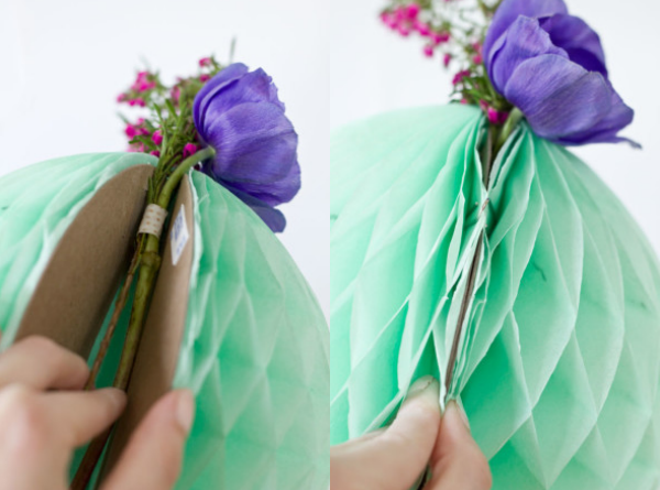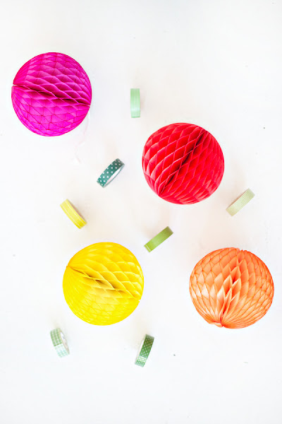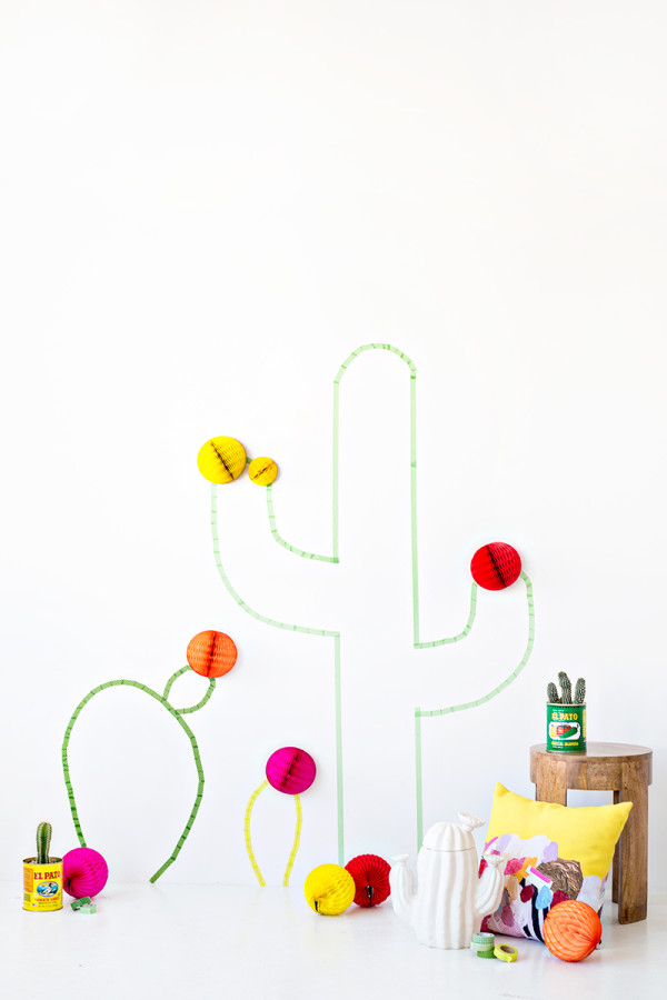 Después solo tenéis que recrear cactus con cinta en verde y amarillo y para rematar usar pompones de nido de abeja tan y como aparece en la foto para que parezcan flores de colores.