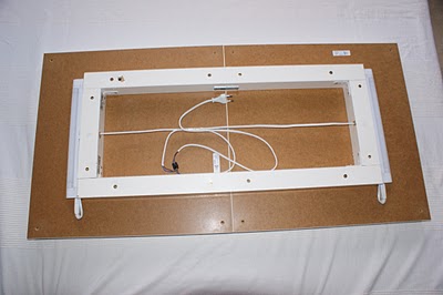 con las patas ..........atornillarlas alrededor de la base y ponerle dos lamparas fluorescentes en los laterales