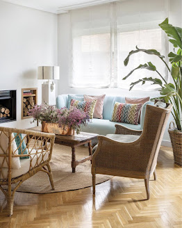 Por ejemplo, un otoño-invierno con el mimbre como protagonista y combinado de manera tan acertada como en esta preciosa vivienda madrileña... Que me decís de los azulejos de la cocina? es como zambullirse perpetuamente en un mar cambiante.. Y por último los papeles pintados de motivos vegetales o animales, divertidos y coloridos a partes iguales...
